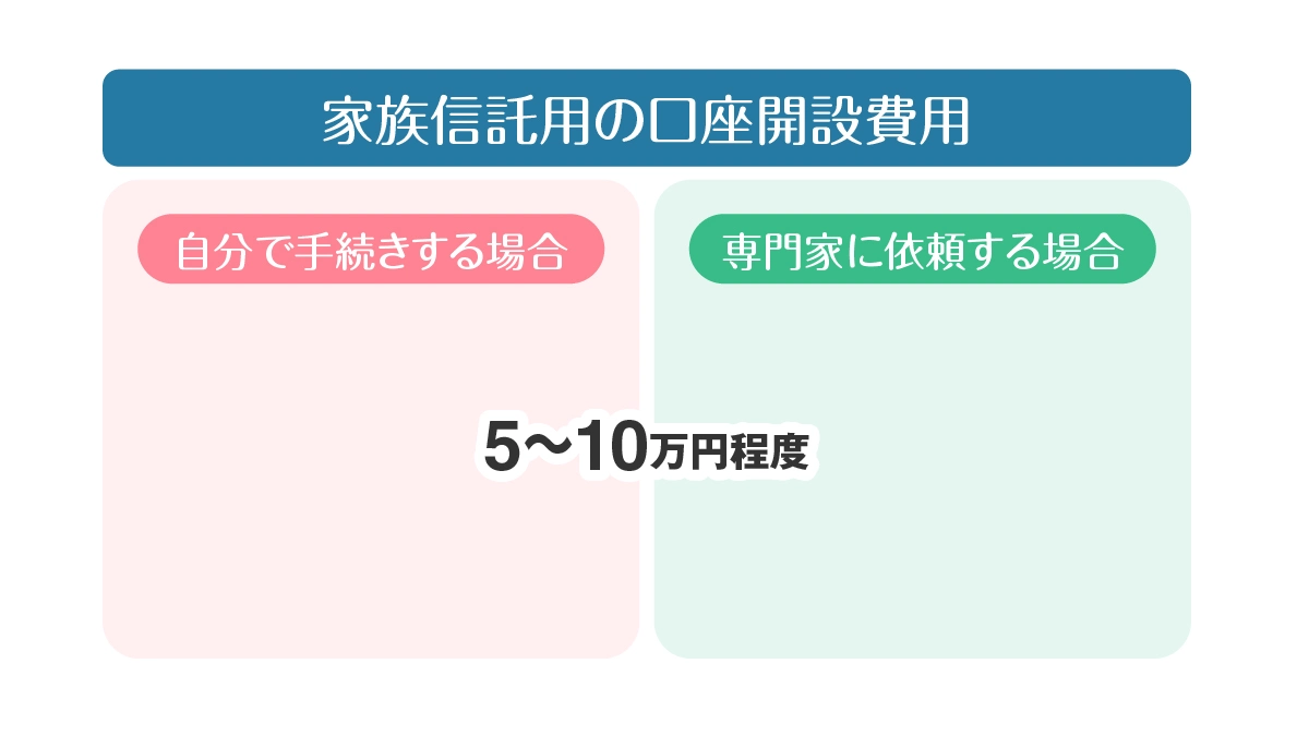 信託口座を開設する際には、金融機関によって口座開設手数料や口座維持手数料が発生する場合があります。費用は、5万〜10万円程度が目安です。