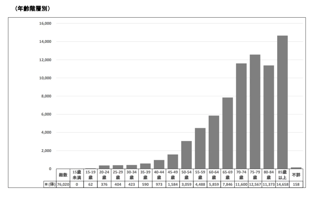 また、警視庁の「警察取扱死体のうち、自宅において死亡した一人暮らしの者(令和6年)」によると、令和6年度の孤独死者数は76,020人でした。このうち、約76%の58,044人が65歳以上です。
