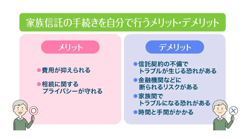 ここでは、家族信託を自分で行う場合のメリットとデメリットについて整理していきます。